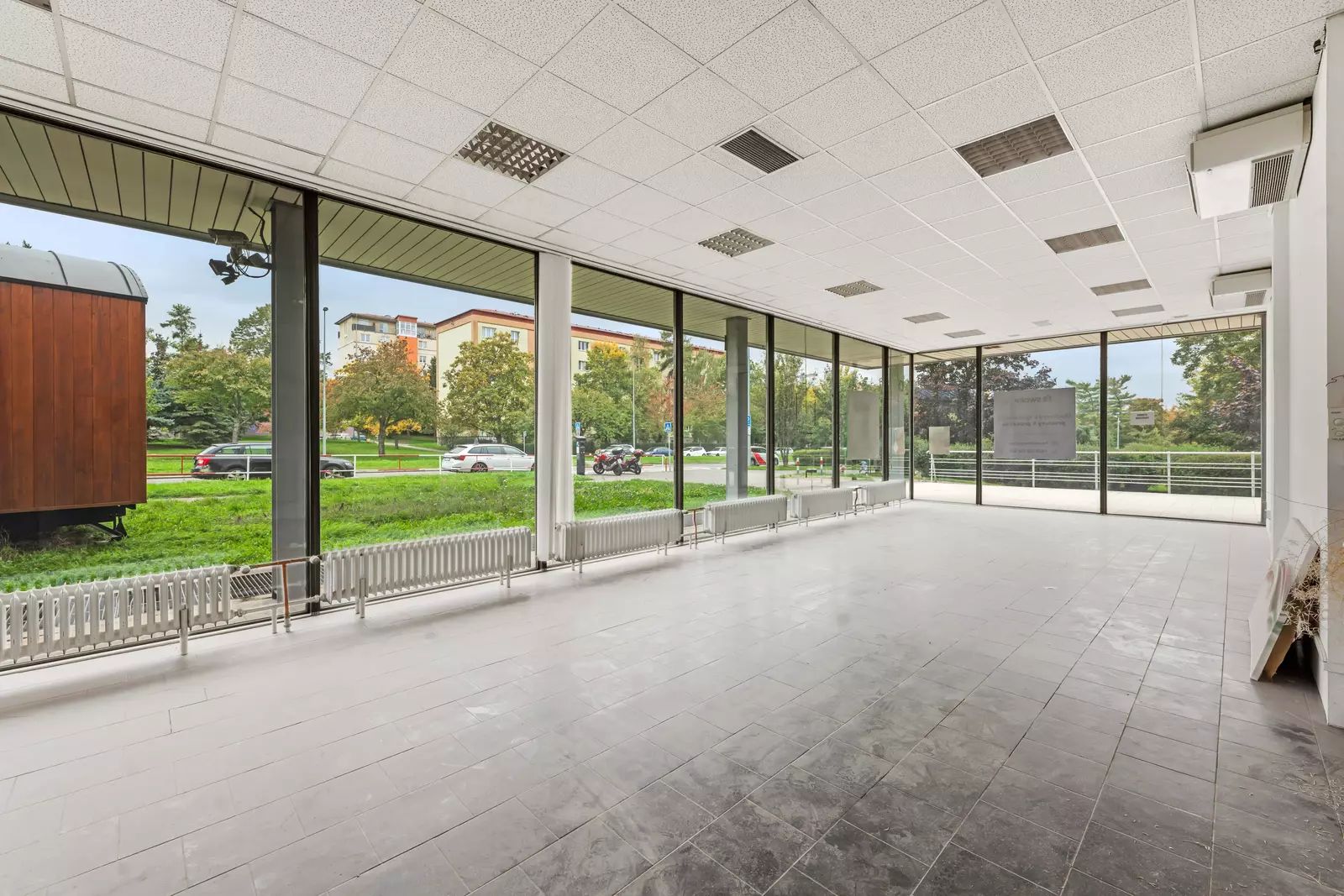 • Velké prosklené výlohy – maximální viditelnost z hlavní ulice a přirozené denní světlo v interiéru