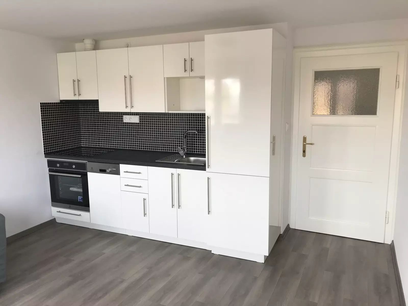 Byt je vybaven kuchyňskou linkou s vestavěnými spotřebiči – lednicí, myčkou, troubou a varnou deskou. Nabízí také dostatek úložných prostor a je vhodný pro dvě až tři osoby.