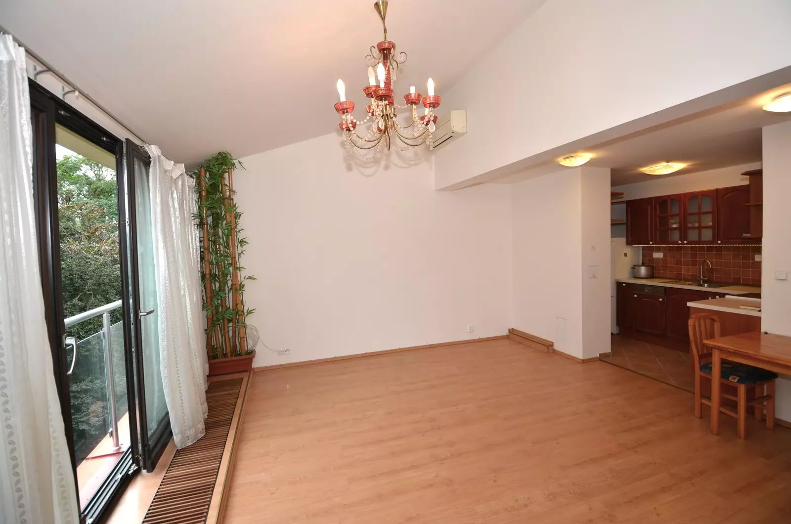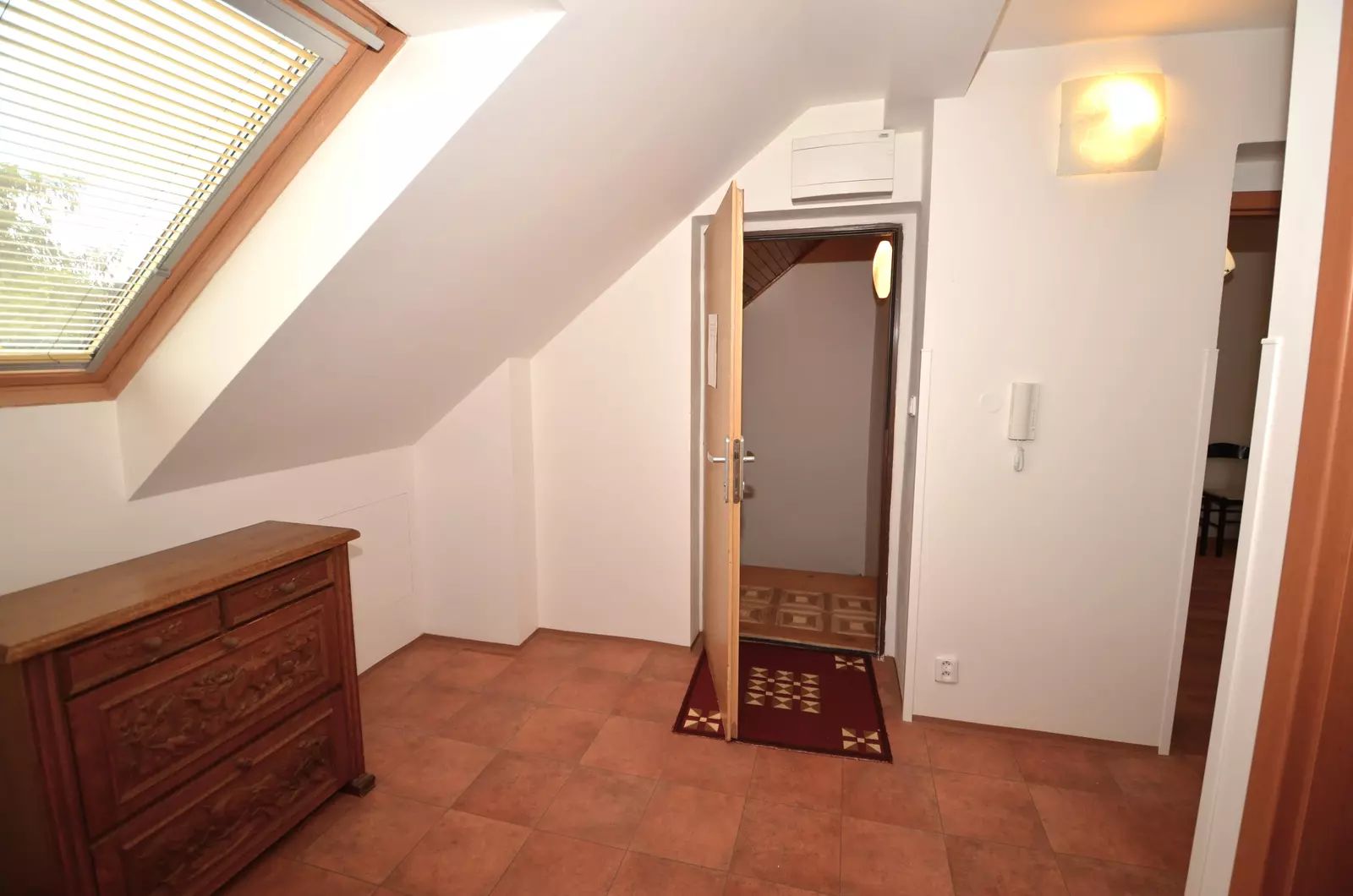 Nabízíme krásný byt, který se nachází ve 2 patře krajního, řadového rodinného domu s vlastním vstupem po schodišti (společná vstupní předsíň v přízemí domu a schodiště se vstupy do jednotlivých bytů). Byt nabízí komfortní a slunný prostor, dispozice bytu je 2+kk, skládá se ze vstupní předsíně, prostorný obývací pokoj s velkoformátovými okny s výhledem do zeleně a na slunnou jižní stranu, kompletně vybavená kuchyňská linka. Dále samostatná ložnice. Byt je částečně vybavený, kuchyňská linka sporák, lednice, pračka, částečně nábytek viz. foto (nábytek možné po dohodě odstranit), koupelna s vanou, wc samostatné. Volné parkování před domem, autobusové spojení na metro Kačerov, nebo Budějovickou. Dům se nachází přímo u vstupu do lesoparku. Majitel preferuje klidnější nájemce, bez domácích zvířat a vzhledem k dispozici bytu 2+kk, maximálně 2 osoby. Garantuje velmi korektní jednání a možný dlouhodobější nájem. Kompletní výše nájmu včetně fixních poplatků je 25000,-Kč měsíčně. Byt je k nastěhování volný ihned. Prohlídky možné po dohodě.