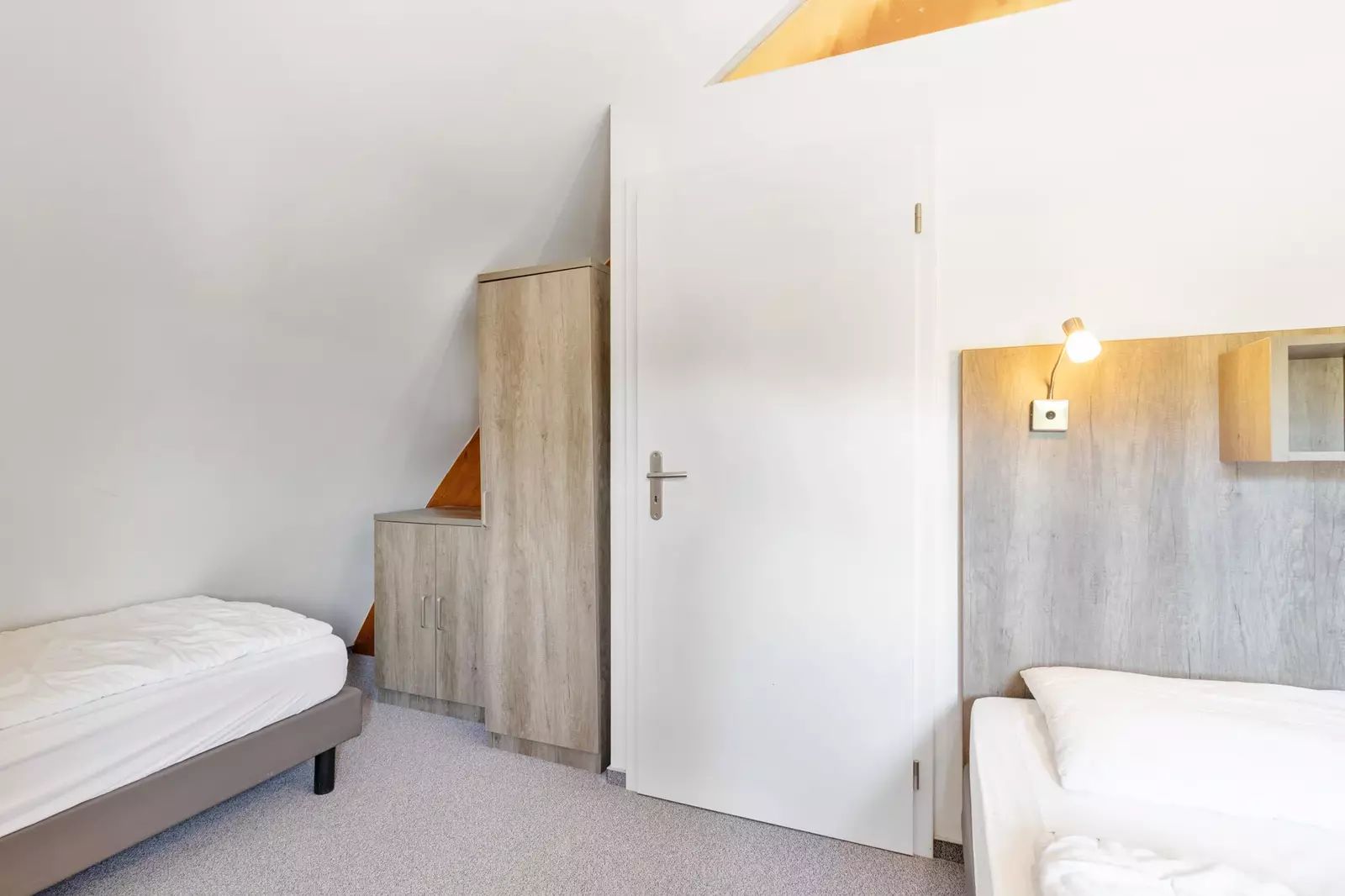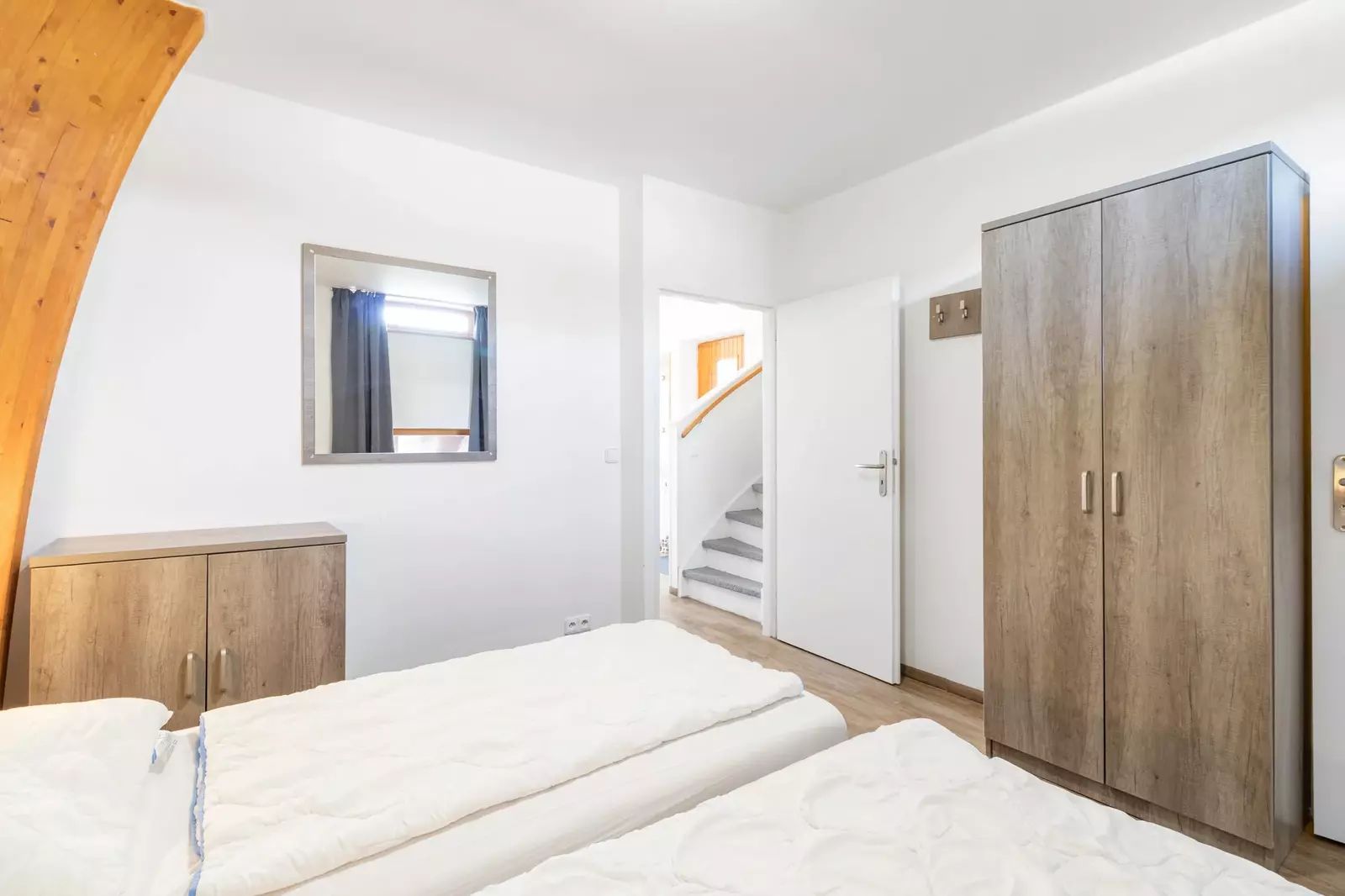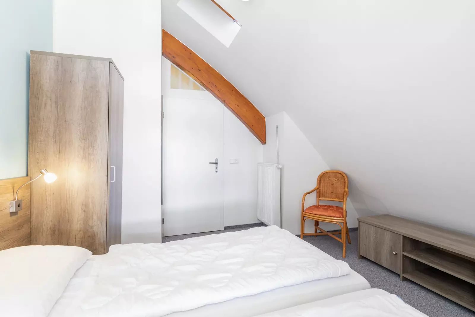 V horním patře se nachází dvě ložnice, koupelna, samostatné WC a druhá úklidová místnost, která může sloužit i jako menší úložný prostor.