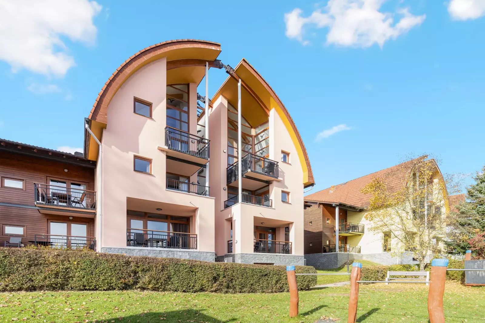 Marina Lipno Resort je vyhledávaný projekt s více než dvacetiletou historií a výborným renomé i mezi zahraničními klienty. Nabízí kompletní zázemí včetně recepce, půjčovny sportovního vybavení, dětského hřiště, restaurací, bazénu, pláže i přímého napojení na promenádu a cyklostezky. V docházkové vzdálenosti se nachází sjezdovka, obchody, služby a veškerá občanská vybavenost.