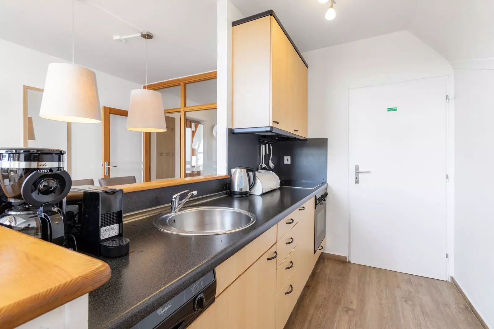 O vytápění a ohřev vody se stará spolehlivý plynový kotel. Apartmán se prodává kompletně vybavený – součástí je kuchyňská linka, nábytek i veškeré spotřebiče, takže je připraven k okamžitému užívání bez nutnosti dalších investic.