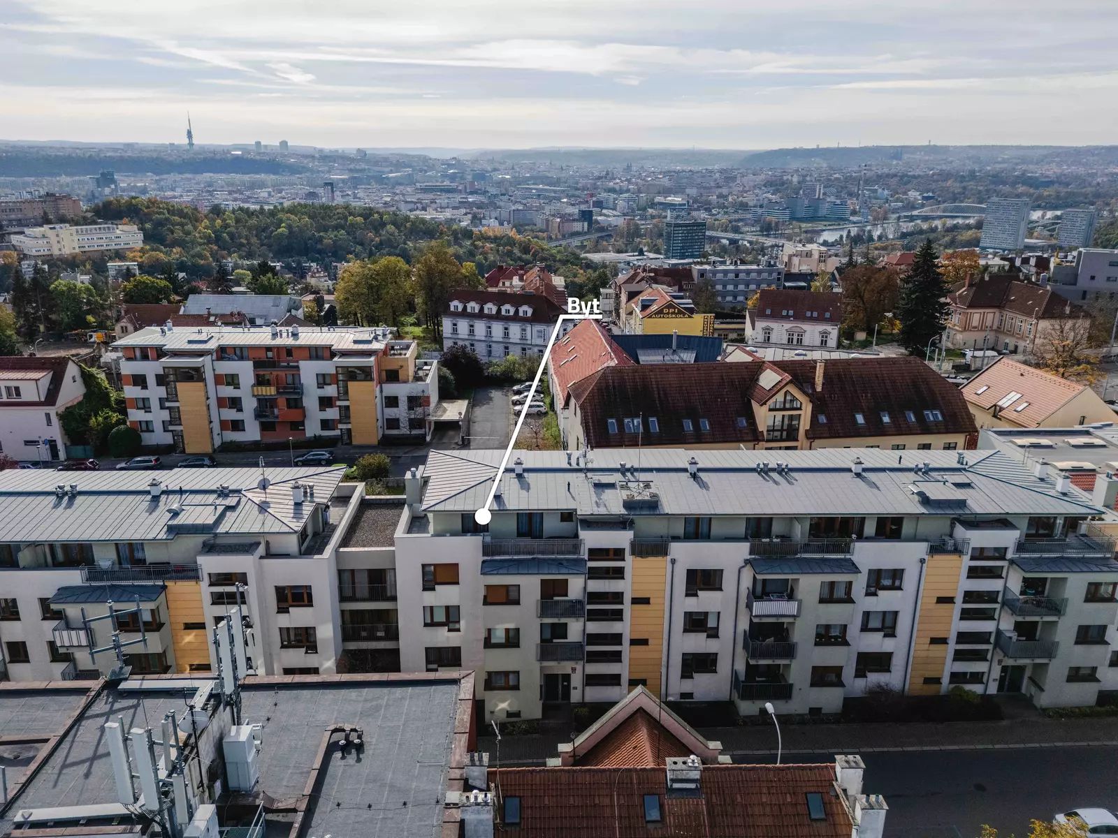 Prodej bytu 3+kk s panoramatickou terasou s výhledem na Prahu a garážovým stáním – Praha 8, Ke Stírce