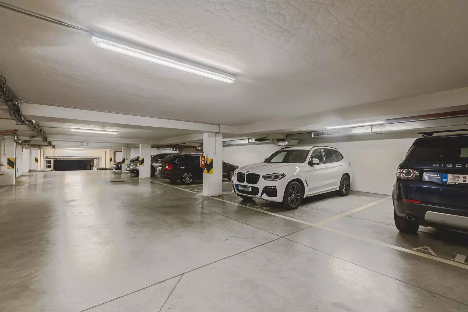 Součástí prodeje je také vyhrazené parkovací stání o nadstandartní velikosti 17,5 m² v 1. podzemním podlaží domu.