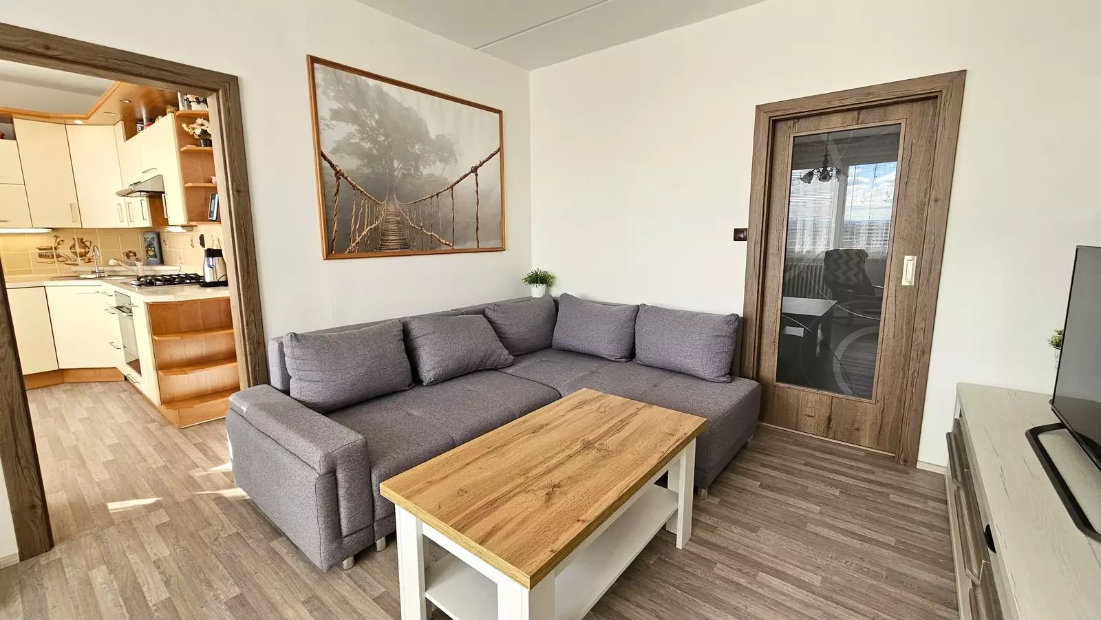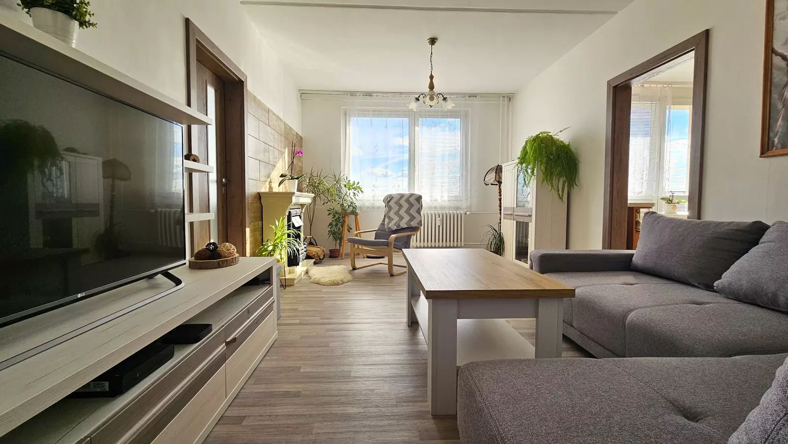 Díky orientaci na jihovýchod je byt velmi dobře osvětlen přirozeným světlem během celého dne. Byt prošel nedávnou rekonstrukcí, při které byla položena nová podlaha ( vinyl) a dveře s obložky. V rámci rekonstrukce byly také zavedeny moderní prvky jako vkusně řešená kuchyň s vestavěnými spotřebiči.