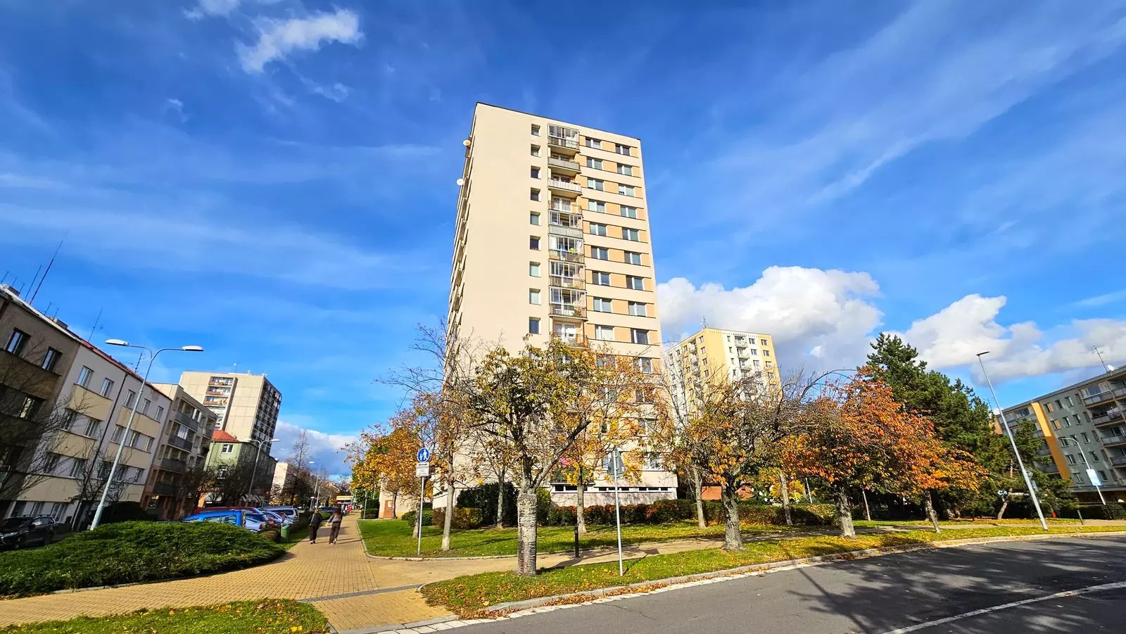 Tento světlý a prostorný byt 3+k1 o celkové užitné ploše 76 m² se nachází ve 13. patře čtrnáctipatrového panelového domu s výtahy. Dispozičně byt disponuje dvěma ložnicemi, obývacím pokojem spojeným s kuchyní, koupelnou a samostatným WC. K bytu náleží také sklep o velikosti 2 m² a lodžie o ploše 3 m², což umožňuje pohodlné posezení s krásným výhledem na město.