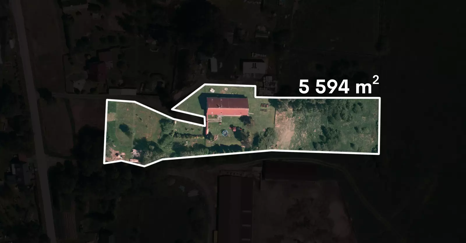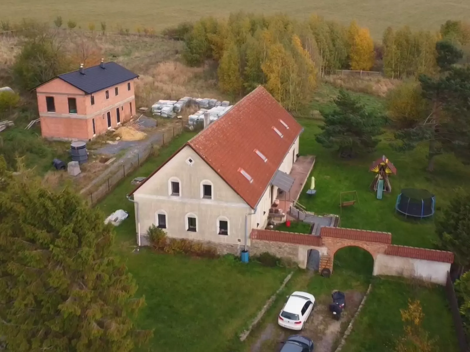 Dům se nachází na klidném a slunném pozemku a je obklopen opravdu rozlehlou zahradou o ploše 5.326 m², ideální pro rodinné aktivity, relaxaci či pěstování plodin.