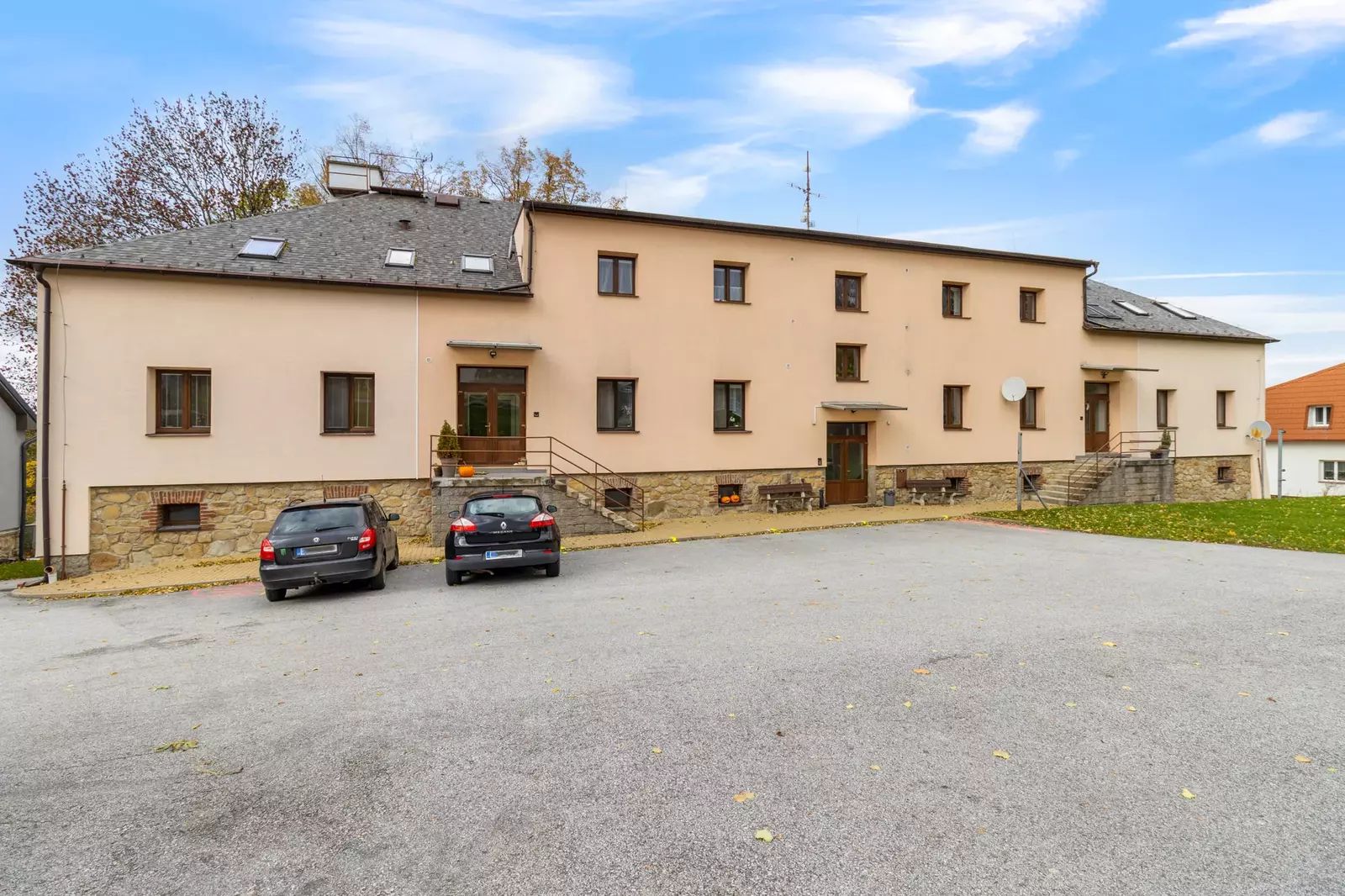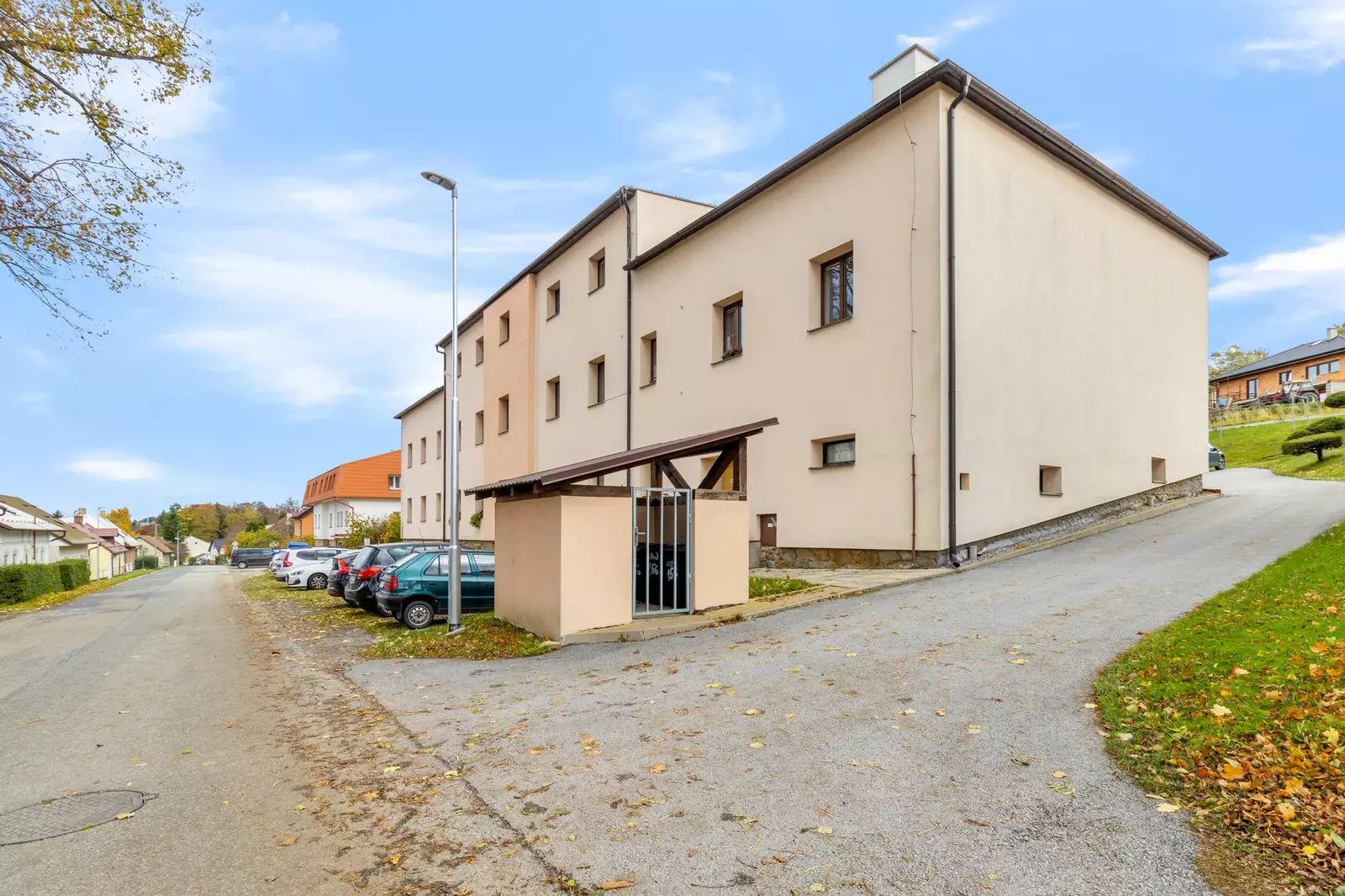 Součástí bytu je sklepní prostor a venkovní parkovací stání. V domě jsou také společné prostory – sušárna a kolárna.