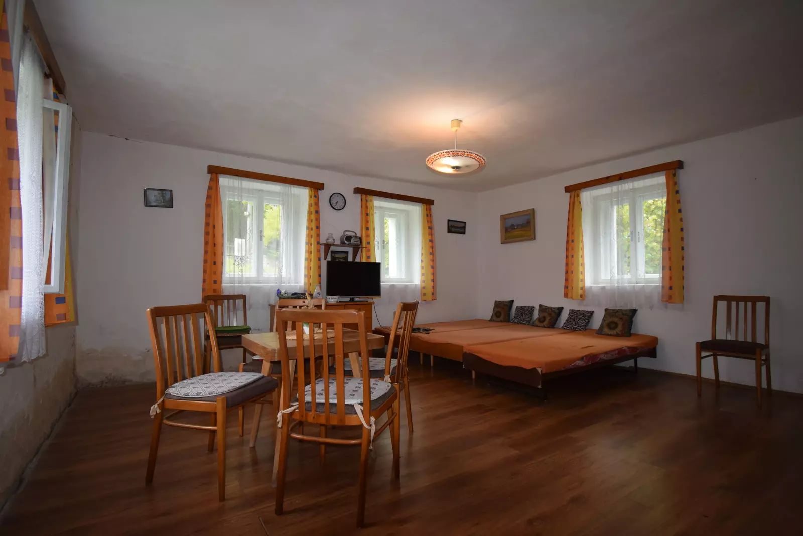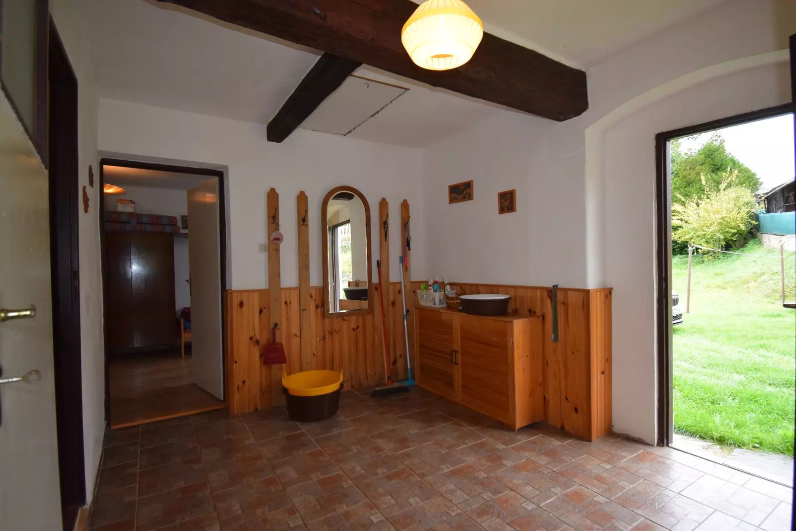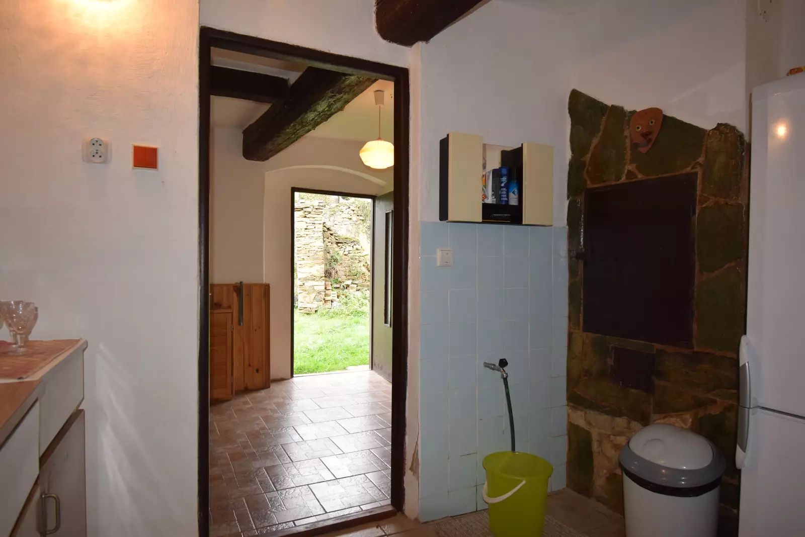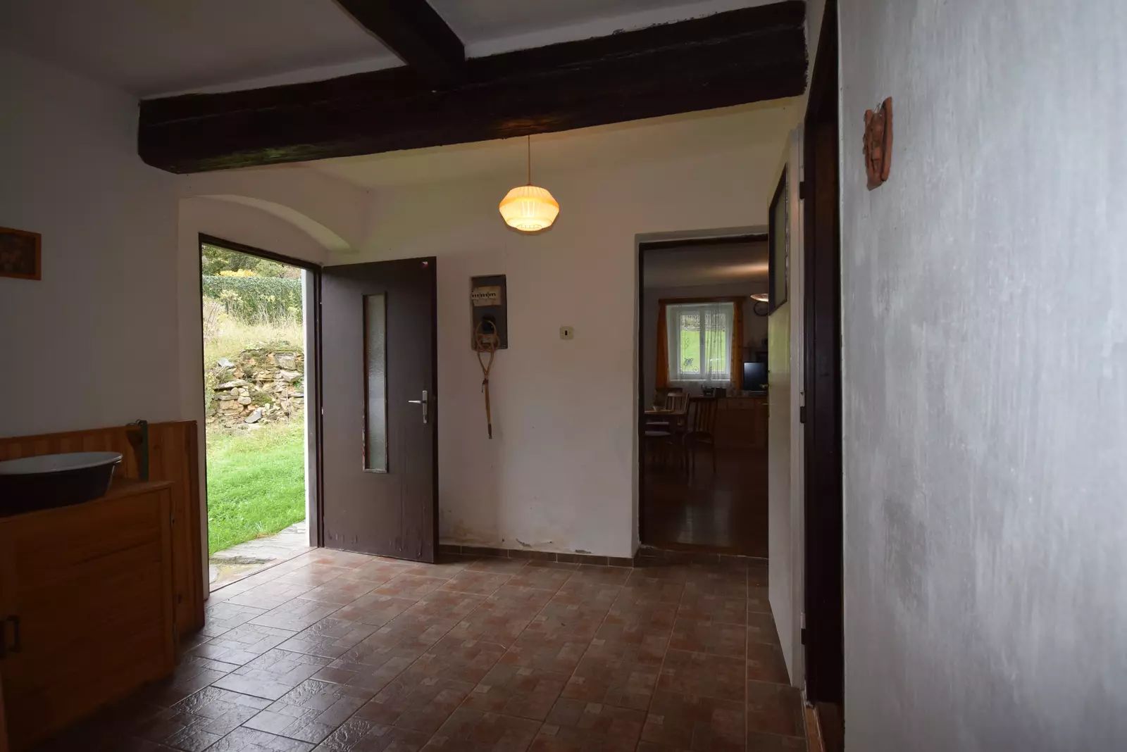 Chalupa o dispozici 2+1 s užitnou plochou 71 m2 je přízemní stavbou, téměř bezbariérovou s možností rozšíření minimálně o jednu obytnou místnost a také o vybudování podkroví. V přízemí domu je prostorné zádveří s užitnou plochou 9,2 m2, odkud se dostaneme do obývacího pokoje o velikosti 27.6 m2, kuchyně o velikosti 7,5 m2 a ložnice o velikosti 17,3 m2. Na zadní část domu plynule navazuje nebytový prostor se samostatným vchodem ze dvora. Tento prostor má 34 m2 a nachází se zde sklad zahradního nářadí a dílna. V tomto prostoru je vestavěná zděná koupelna s WC o velikosti 8,8 m2.